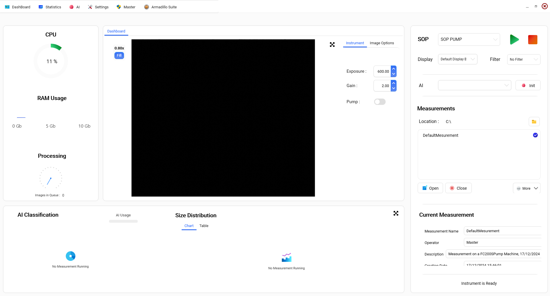 Data and images of each individual particle are stored in the Occhio binary database. The Zephyr LDA is powered by Armadillo software, which manages the entire analysis process, including Standard Operating Procedures (SOP), statistics, reporting, and data storage.